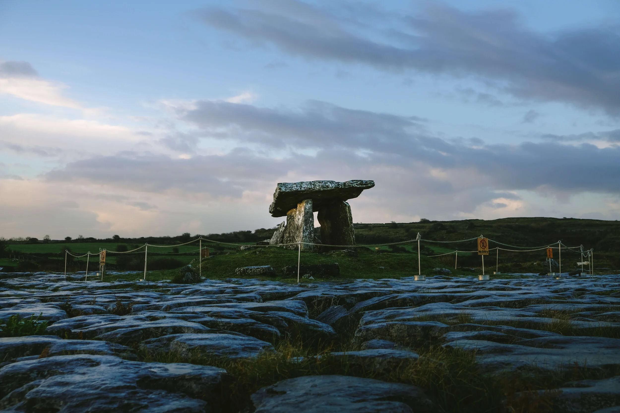 Dans le comté de Clare, au milieu du Burren, se trouve une pierre pas comme les autres. Une pierre ? Non! Un Dolmen d’environ 6 millénaires. Incroyable de penser que ces mégalithes ont vu passer près de 6000 hivers, résistant encore et toujours aux intempéries.